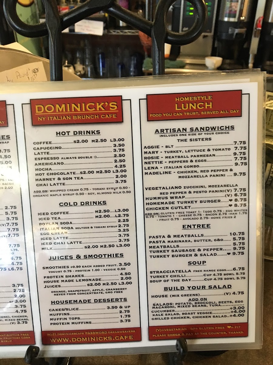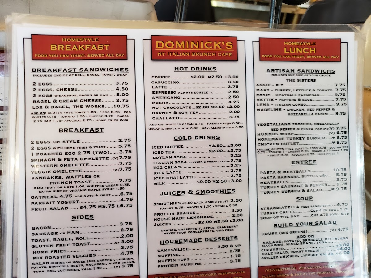 Dominick's Cafe Menu (Update 2025)